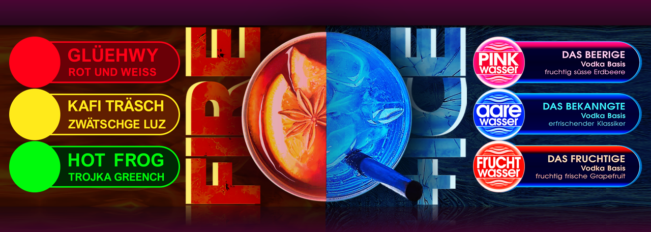 Der beliebte und exklusive DIVINO Cocktail Klassiker AAREWASSER wurde durch andere Geschmacksnoten ergänzt. Als Basis-Spirituose verwenden wir Vodka oder Gin gepaart mit einem Likör. ACQUA DIVINO COCKTAILS gibt es für jeden Geschmack und Anlass in jeder Grösse vom 3 dl. Glas bis zum 3 Liter Turm. NEU kannst Du dein Lieblingswasser in unserem online-Shop «CLICK & COLLECT» in 7 dl. Flaschen bestellen und später abholen.